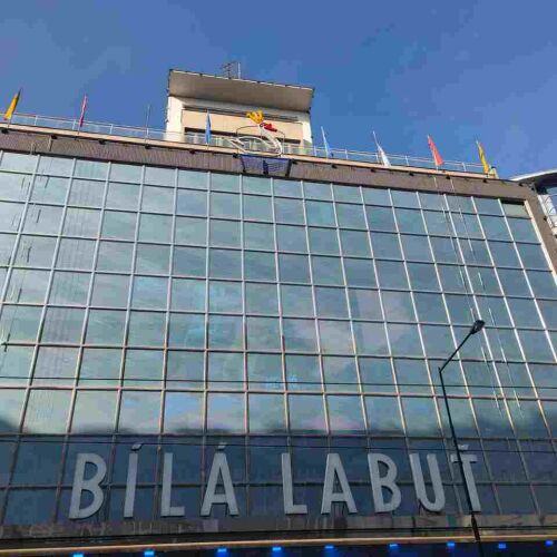 Można się tam dostać różnorako: wyjść z metra na Náměstí Republiky lub podjechać „14‑ką” o jeden przystanek dalej od Masarykova nádraží. Na pewno Jídelna U Rozvařilů, na 5. piętrze domu towarowego Bílá labuť, jest po drodze.