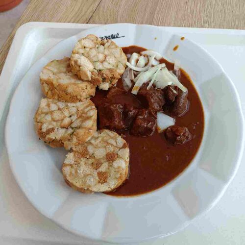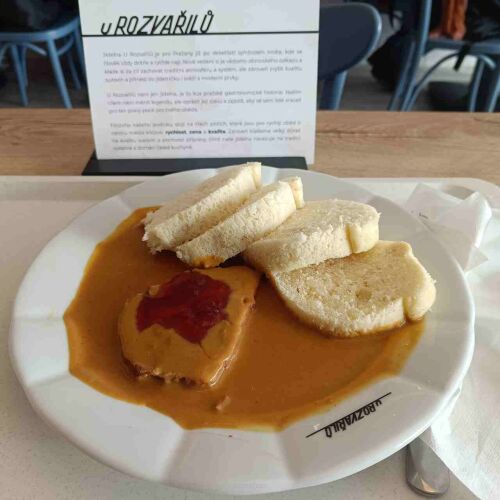 Jaki więc jest ogólny obraz? Wszystko gra i bucy, do lokalu bieżą tłumy, panuje radosny zgiełk, a jakość czeskiej klasyki miło zaskakuje. Wprawdzie česnečka nie powaliła na kolana, ale Hovězí guláš s karlovarským knedlíkem i Svíčková na smetaně to już standard wyżej niż w większości ostrawskich szynków (tych bardziej zwyczajnych). Dość dodać, że Radegastovna Na náměstí i ten sam Hovězí guláš spożywany w Ostrawie w wersji z Houskovým knedlíkem nie miał do neigo dojścia.